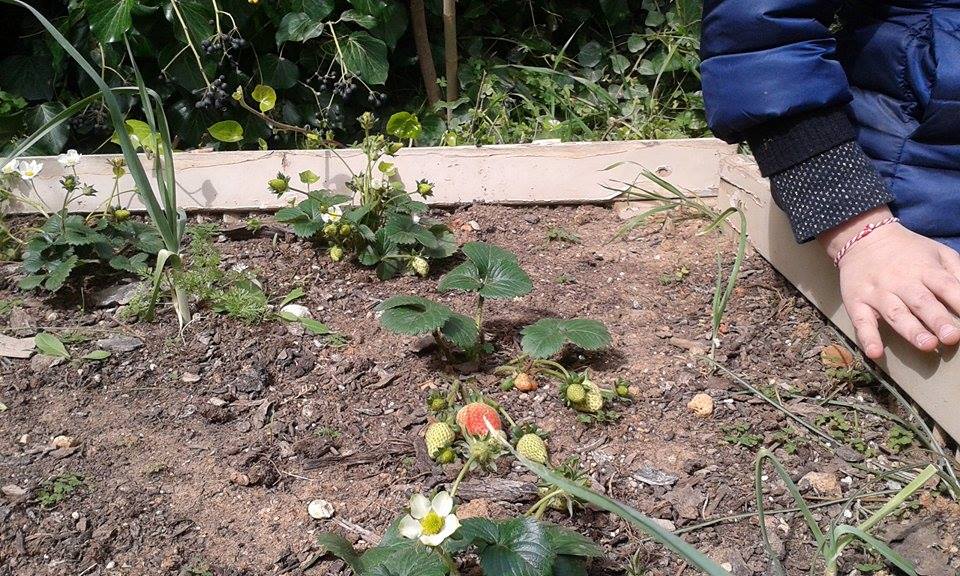 Μετά από αυτό, τα παιδιά φοράνε κατάλληλα για την εκάστοτε εποχή (σαλοπέτες) για να βγουν στον κήπο. Εκεί μπορούν να παίξουν, να ποτίσουν, να φυτέψουν, να ταΐσουν τις κότες, να μαζέψουν τα αυγά, να ασχοληθούν με την άμμο στο σκάμμα, να σκαρφαλώσουν στα δέντρα, να κάνουν κούνια και πολλά άλλα. Μια φορά την εβδομάδα πηγαίνουν σε ένα κοντινό ελαιώνα, όπου τα παιδιά σκαρφαλώνουν στα δέντρα και κουβαλούν πέτρες για να χτίσουν "Σπίτια και κάστρα".